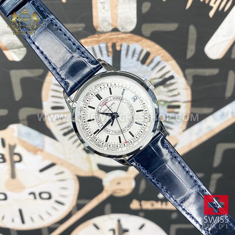 Patek Philippe Calatrava Complications Weekly Calendar 40mm 5212A-001 Silver Dial on an Original Blue Leather Strap